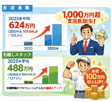 株式会社アップル(本社:東京都中央区、代表取締役:文字放想)は、2023年8月に定めた『Employee Commitment (従業員への約束)』に基づき、その具現化と、一人ひとりの人生を心豊かにするプロセスの提供に邁進してまいりました。 2016年に代表・文字が全社員の前で宣言した「成果を出せば年収1,000万円を超える仕組みをつくる」という目標。 当時は夢物語とも捉えられたこの約束が、9年間にわたる組織改革と育成体系の構築を経て、 2025年度においてついに現実のものとなったことを報告いたします。 ※1:自社調べとなります ■ 従業員との約束「Employee Commitment」の現在地 アップルは、若者が「正しい思考姿勢」を育み、かつ「経済的余裕」を得ることで、物心両面の豊かさを手に 入れることを経営の最優先事項としています。この「約束」を果たすべく取り組んできた成果が、データとして現れています。 有言実行の1,000万円プレイヤー誕生: 2025年度、アップル初となる年収1,000万円超の支店長が誕生。次点の支店長も年収850万円に到達するなど、 一部のトップ層のみならず、組織全体のベースアップが実現しています。 支店長平均年収の大幅向上:120%増を達成。 2020年の520万円から、2025年には624万円へと伸長(5年前比較で120%増)。 現場スタッフ(引越しスタッフ)への還元:127%(約100万円アップ)を達成。 現場を支えるスタッフの報酬も127%増、約100万円アップを達成(4年前比較)。 業界全体の課題である「待遇改善」を、自社の成長によって証明しました。■ 「人生を耕し、実りを分かち合う」アップルの姿勢 今回の実績は、単なる給与アップではありません。当社が推進する、若者の人生という土壌を先に整える 「耕育(こういく)」と、そこで得られた成果を正当に分かち合う「還流」の仕組みが機能し始めた結果です。 ■ 代表取締役 文字放想のメッセージ 「私は14歳から引越しの現場で働き、この仕事が持つ『人を成長させる力』を誰よりも信じてきました。 だからこそ、ブルーカラーの現場が『夢を語り、それが本当に叶う場所』であることを証明したかった。 今回の1,000万円プレイヤーの誕生は、一つの通過点に過ぎません。これからも、若者が自らの可能性を信じ、 素晴らしい毎日を自らの手で切り拓いていけるよう、私は従業員との約束を果たし続けます。」 ■ 今後の展望:アップルから日本を元気に アップルは、人件費を「コスト」でも「リターンを求める投資」でもなく、共に未来を創るためのエネルギー「共創原資」と定義し、 この思想に基づく「耕育(こういく)」の実践により、引越し業界の常識を塗り替え、引越し業界のみならず、 物流・運送などの類似業界、そして日本中の若者へと広げていく「ヒューマン・ニューディール」の旗手を目指します。